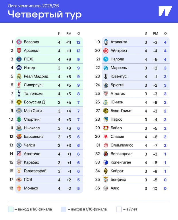 И вот к чему это все привело. В топе двое идеальных, «ПСЖ» подпирает, но присоединиться к самой элите еще в среду может «Интер».