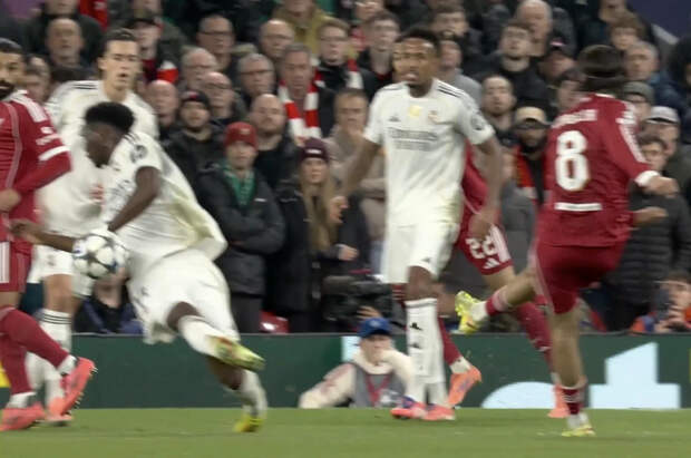 «Мадрид» почти ничего не создал. «Ливерпуль» включил прессинг, еще до перерыва придумали несколько опасных моментов – спасал великолепный Тибо Куртуа. На 32-й минуте «Ливерпуль» всерьез претендовал на пенальти: после удара Доминика Собослаи мяч попал в руку Орельену Тчуамени.