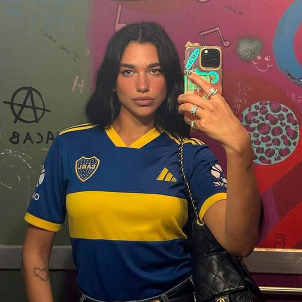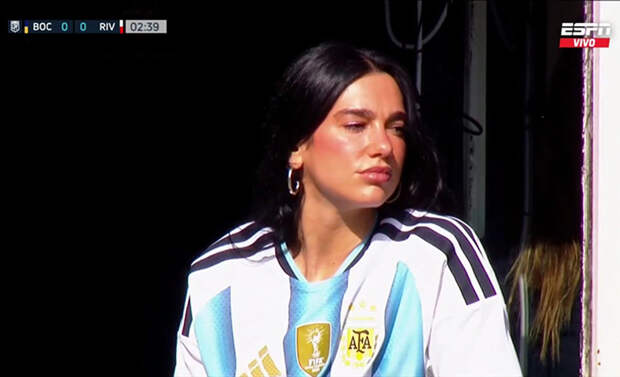 Вся Аргентина – в восторге, фото Дуа Липы с матча – во всех соцсетях. Певица сидела в майке сборной Аргентины: не рискнула надевать футболку «Ривера», которую ей подарили перед матчем.