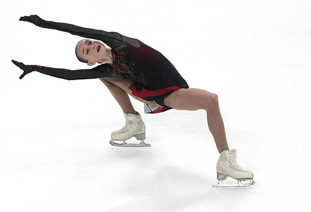 С темпом Хуснутдинова справляется и к тому же идет на большой риск. В произвольной у нее два тройных акселя – сольно и в каскаде с двойным тулупом. В Магнитогорске оба получились чисто. В короткой она тоже зашла на триксель, но на нем нашли недокрут в пол-оборота, еще больше оценку испортило касание на выезде.